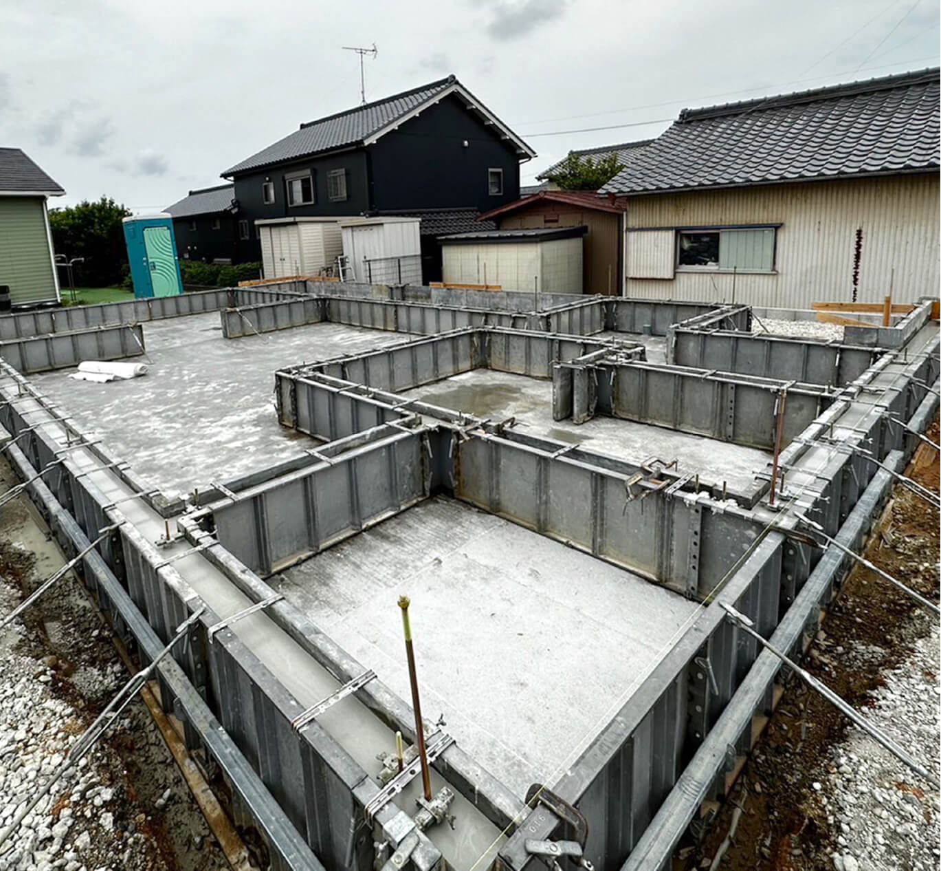 株式会社LC TOWN(エルシータウン)では、建物を建てる前に重機を使って土地を平らな状態に整備する「造成工事」から、基礎を作る為に必要な型枠や鉄筋を組む作業、コンクリートを流し込んで固めるまでの作業を一貫して行う為、基礎工事における様々な工程を経験する事が出来ます。